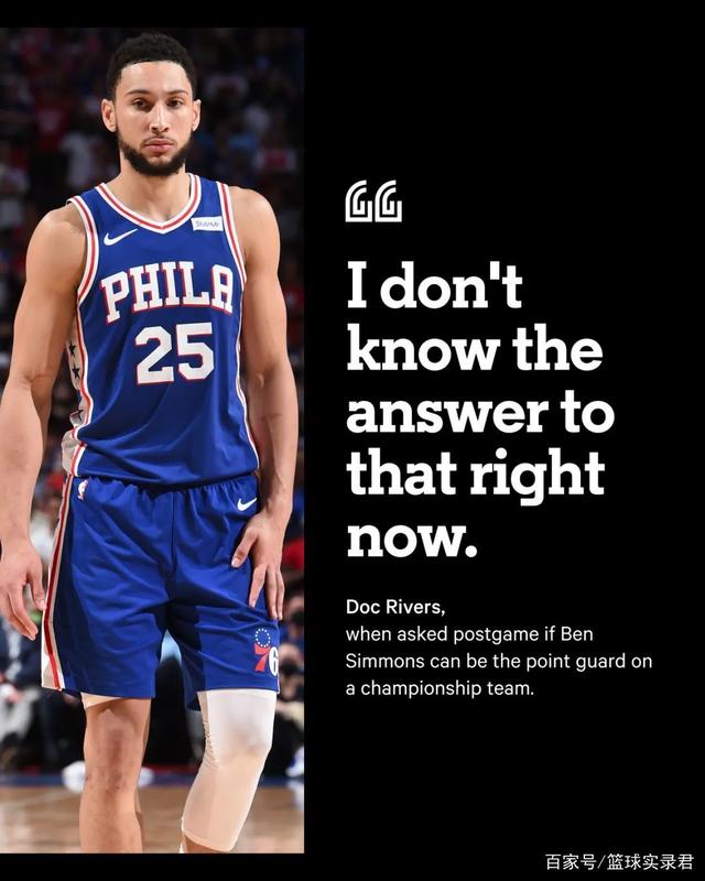 更有意思的是,赛后,记者问里弗斯:“你觉得西蒙斯能成为冠军控卫吗?”,里弗斯的回答堪称公开处刑:“我也不知道这个问题的答案。”——里弗斯还是西蒙斯,今年休赛期,可能得有一个人走了。