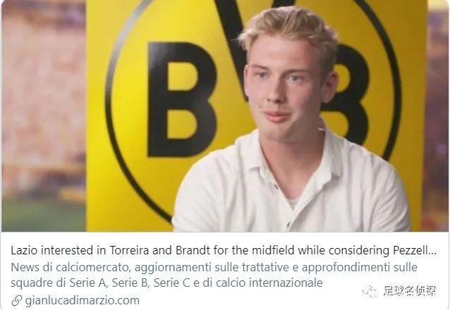 迪马济奥消息,拉齐奥正努力为新赛季重建阵容,他们正考虑很多中场目标,包括托雷拉和布兰特。