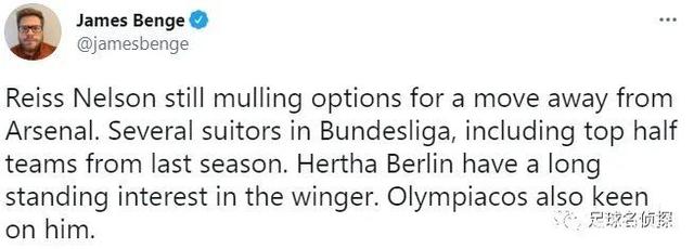CBS记者JB发推,内尔森仍在仔细考虑于今夏离开阿森纳的选择,很多德甲球队对他感兴趣,包括一些上赛季排名德甲上半区的球队。
