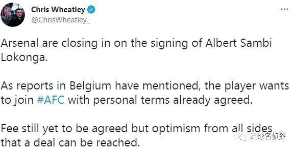 伦敦足球记者CWY发推表示,阿森纳正接近签下洛孔加。