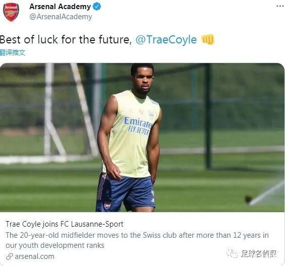 官方:阿森纳宣布特雷-科伊尔转会加盟了瑞士的洛桑体育俱乐部。