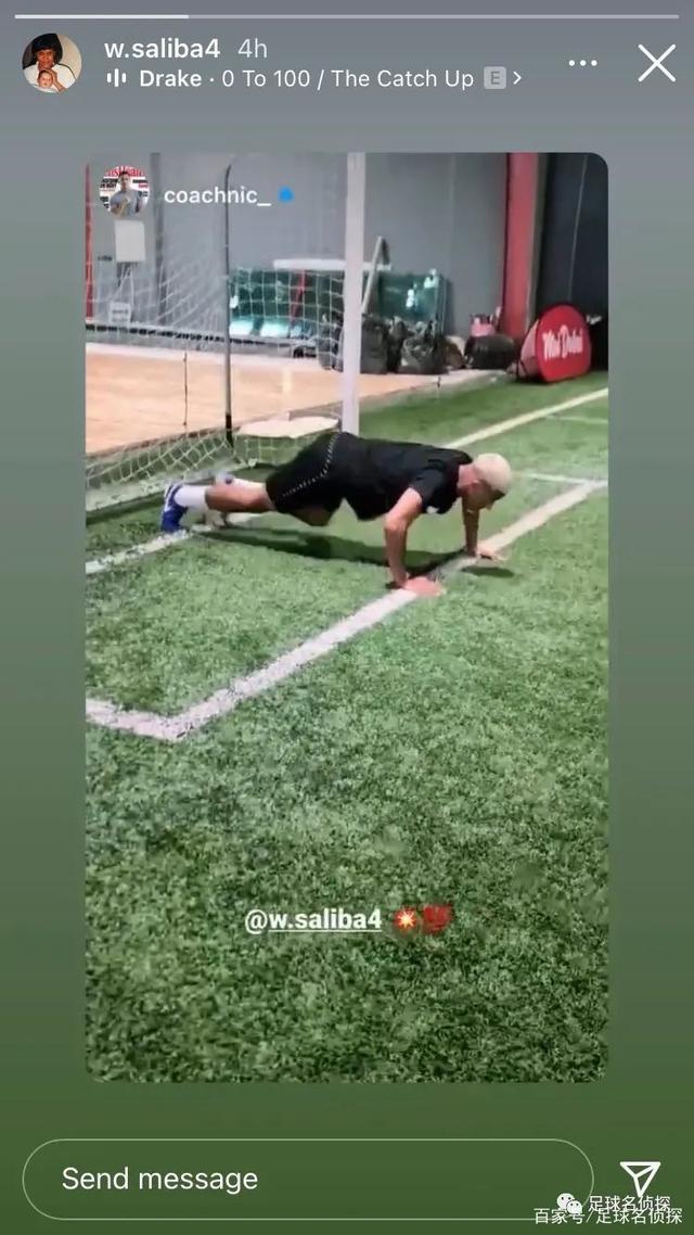 萨利巴在ins上展示了自己的新发型,这名中卫正在私人训练师的帮助下保持状态。