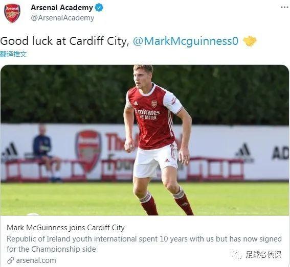 官方:阿森纳宣布麦克吉尼斯转会加盟了英冠的卡迪夫城。