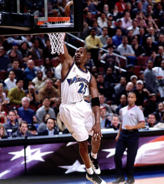 乔丹奇才时期早就不是巅峰,但是那是相对于自己,他的数据在联盟依旧是顶级球星。2003赛季乔丹场均20分6.1篮板3.8助攻1.5抢断,这哪里像是40岁的人打出的数据。只能说“神”沦为了巨星,即使这样他还是入选了全明星首发,就这数据放现在轻松2000万一年。