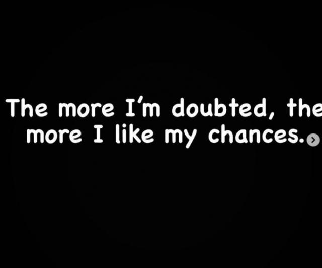 其配文写道:“被质疑得越多,我就越喜欢自己获得的机会。”