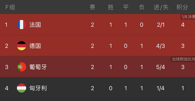 F组:这个小组的两场比赛对乌克兰有利的结果为:德国和葡萄牙全部输掉比赛,并且是不能小比分输掉。德国、葡萄牙目前和乌克兰同样是积3分,即使输掉比赛,也会在净胜球上面有优势。