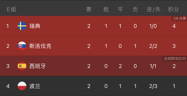 E组:两场比赛的胜负都将关系到乌克兰的出线希望。对乌克兰最好的结果是:瑞典胜或者平波兰,波兰最多只有2分;同时,斯洛伐克必须胜西班牙,因为乌克兰净胜球为负,而西班牙目前净胜球为0,如果这场比赛踢平,西班牙的净胜球会占优势。