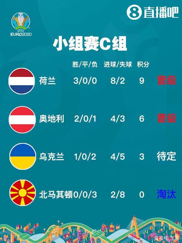 C组:荷兰(C1)、奥地利(C2)确定晋级,乌克兰(3分)待定