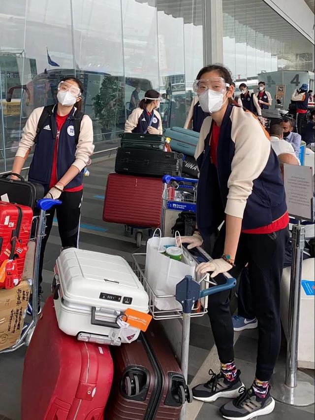 在罗马机场,女排的行李箱、大小包裹极多,女排上下也十分注重安全,戴上护目镜、手套,来去都是“全副武装”。朱婷与姚迪又是形影不离地在一起,不愧是整天黏在一块的好闺蜜。