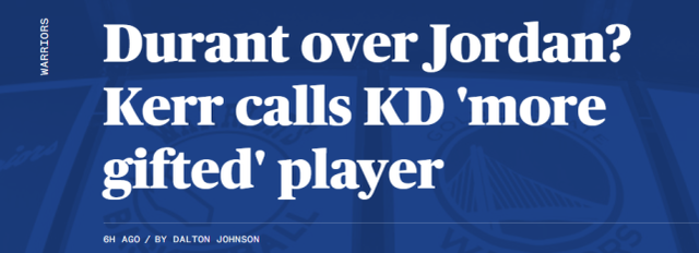 北京时间6月23日,勇士主教练科尔接受媒体采访,谈到了自己即将开启的奥运之旅。他将担任波波维奇的助理教练,一起力争为美国男篮再添一块奥运金牌。而在这一过程中,他将再次执教凯文-杜兰特。在采访中,科尔表示他认为杜兰特比乔丹更有天赋。