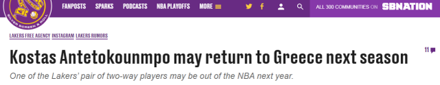 字母弟固然上赛季跟随湖人夺得过NBA总冠军,但他在湖人就是边缘球员,且前3个赛季在NBA均是签约双向合同,因而他已经没有资格再与其他球队签约双向合同。