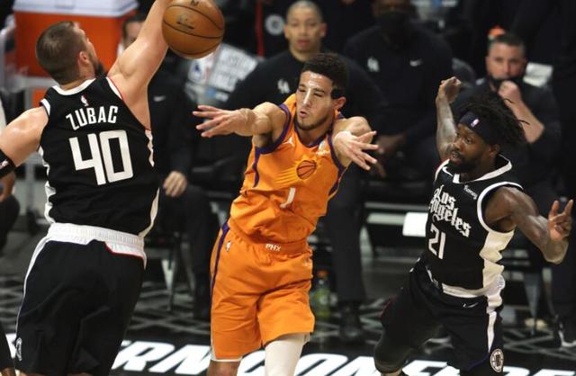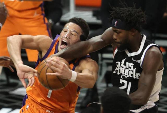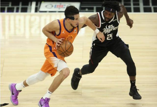 而这个开始,实际上是泰伦卢总能够通过输球之后的调整,找出对手的破绽,同时也找到应对之法,前两轮如是,而西决更是如此。如果不是G2最后0.9秒幸运女神站在太阳这边,或许上一场快船就将比赛带走了。而相比于G1输球,泰伦卢从G2开始做得最好的一点,就是对布克进行了针对防守,并且让他在G2全场16投仅5中,而这场G3,布克更是只有21投5中,而且还是在保罗复出分担压力的情况下,足以看出,卢帅针对布克的防守策略,是有多么成功,当然,也要感谢贝弗利在防守端的努力。