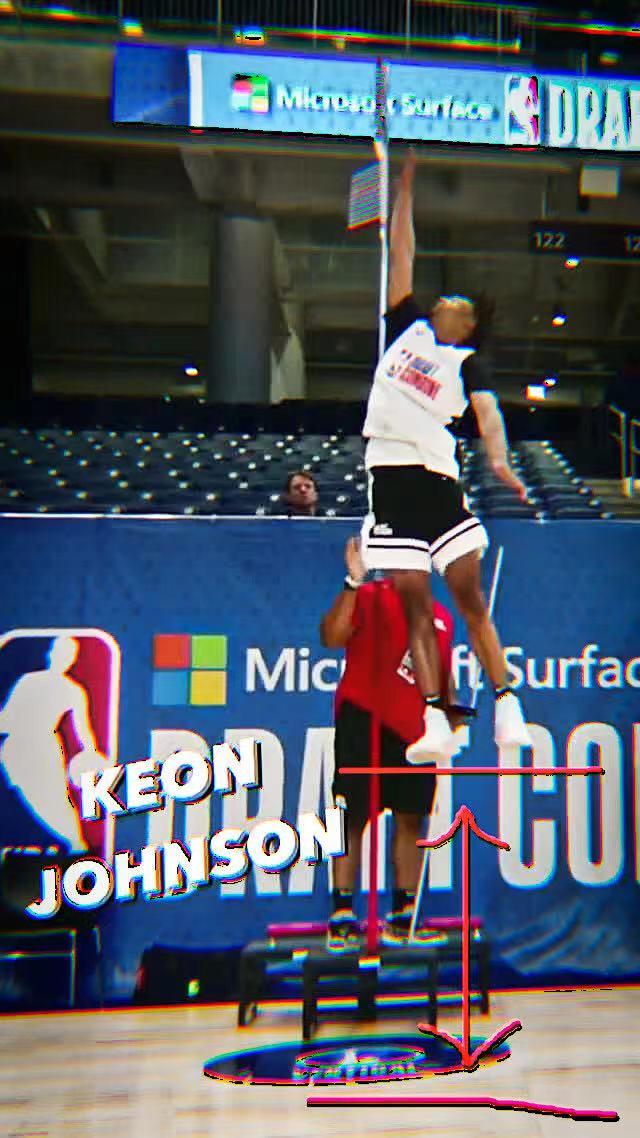 如果大伙对这个成绩没有一个概念,那我可以告诉你,之前的记录是由Kenny Gregory在20年前创造,而Keon Johnson一口气将这个成绩提高了大概2.5英寸(约6.35厘米)。