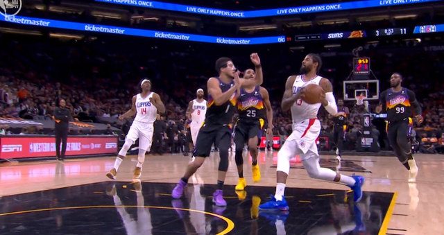 本场对决,快船莱昂纳德、祖巴茨和伊巴卡缺席,太阳的阵容相对齐整,保罗和布克带队出战,他们有机会拿下这个系列赛。乔治带队背水一战,祖巴茨的缺席让快船内线高度下降,曼恩取代祖巴茨首发。