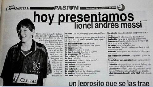 随着年龄的增长,梅西越来越受到职业球队的关注,纽维尔斯老男孩俱乐部将这位天赋异禀的足球少年招进了自己的梯队,此时的梅西身材依然瘦弱,可他的脚下技术依然出色,对手很难从他脚下断掉皮球,在梅西13岁时,就因为天赋出众而登上了当地的报纸。