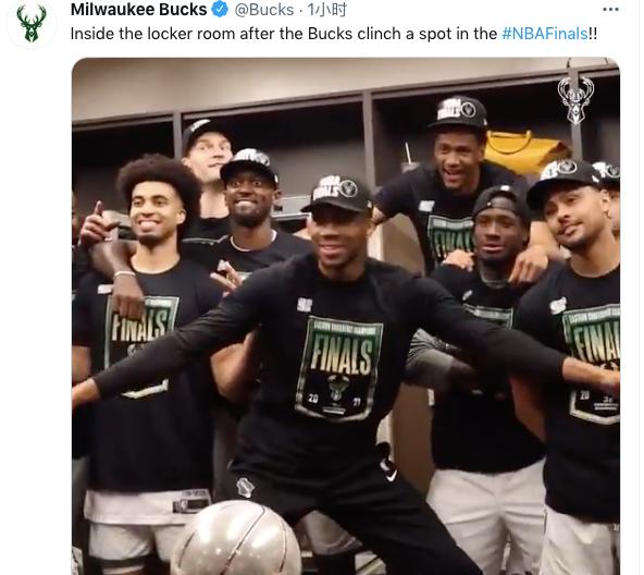 北京时间7月4日,雄鹿4-2淘汰了老鹰晋级总决赛。这一刻,他们已经等了47年之久。晋级总决赛之后,雄鹿的更衣室也是一片笑声欢呼声,字母哥紧抱奖杯,相当抢镜。