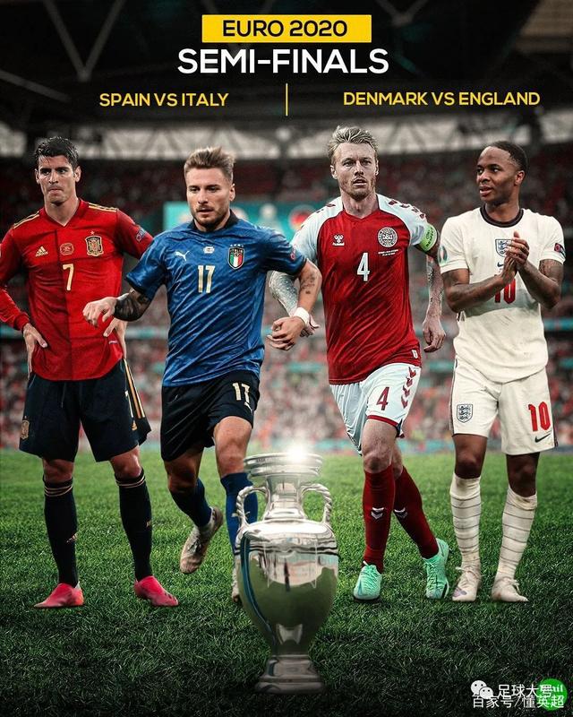 两组半决赛对阵揭晓,上半区意大利VS西班牙,下半区英格兰VS丹麦。
