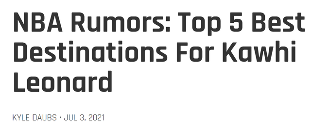 由于伦纳德一直都是一名沉默寡言的球员,外界对于他未来的意愿与报道并不多,大部分都是结合场上的契合度来推荐。