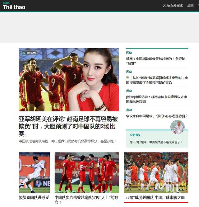 不得不说,现在的越南媒体真是非常关注中国足球。如上图所示,在《soha》的体育页面中,首页共9篇报道,其中有8篇都是关于中国足球的,其中划红线的就是上文所介绍的那篇报道(为了更加直观,这里用了机翻后的截图)。