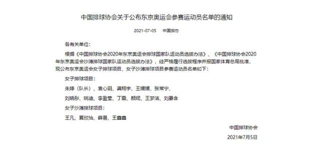 7月5日是东京奥会女排比赛参赛各队提交名单的截止日,中国排球协会压哨公布了中国女排奥运会12人名单,球迷熟知的朱婷、张常宁、李盈莹、袁心玥、颜妮、丁霞、龚翔宇等“七仙女”悉数入选,其他5人是姚迪、王媛媛、刘晏含、刘晓彤和王梦洁。