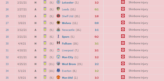 上赛季他成功制造6个进球和10次助攻,两项数据都比起预期的进球和助攻(expected goals和expected assists)稍高一点点,如果不是受到胫骨伤患困扰,相信他可以创造出更亮丽的数据,而阿斯顿维拉在他缺阵下,成绩亦难免受到影响,在他缺阵的12场联赛里面,维拉只能取得三场的胜利,可见这位进攻核心对球队的重要性。