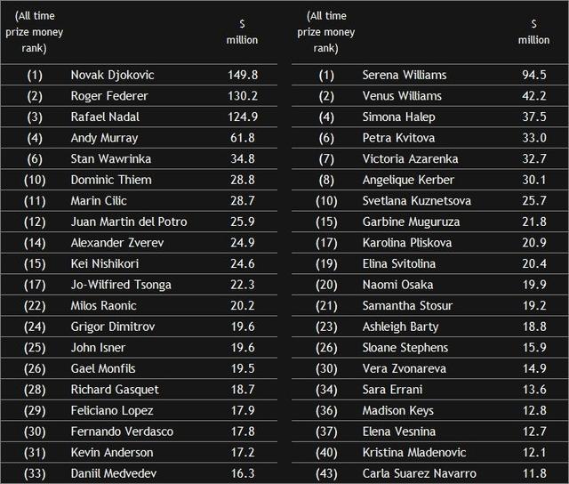最近10个赛季网球奖金不断水涨船高,而德约凭借在最近十年来的强势统治力成头号受益者,过去10年10个单赛季奖金榜他有5个赛季排名第一,包括2015年创纪录的2110万美元,这甚至超过1989年整个赛季大奖赛奖金。