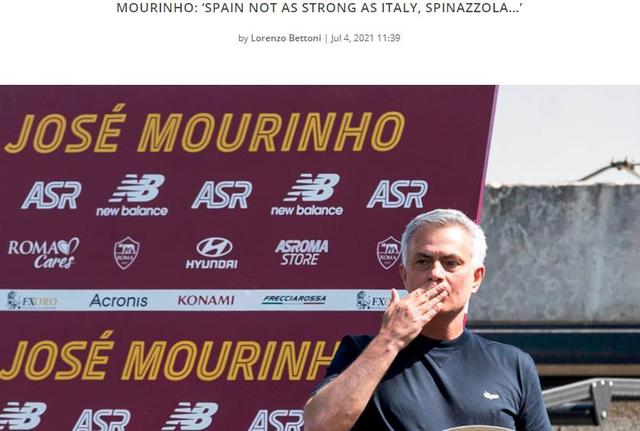 意大利媒体football-italia报道,罗马主帅穆里尼奥谈到了即将开始的欧洲杯半决赛。穆里尼奥认为,西班牙没有意大利强。不过穆里尼奥也提醒意大利,这支西班牙队有天赋有自己的技战术想法,完全有能力在任何时候击败对手。