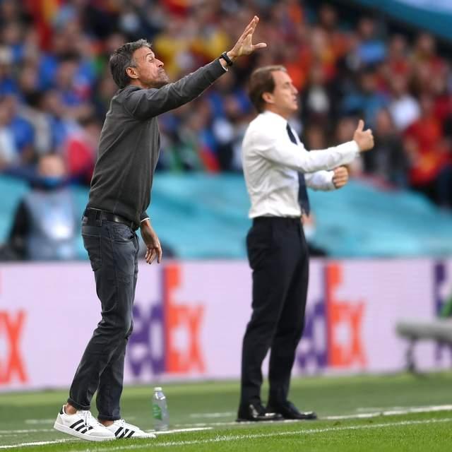 比分变为0-1后,西班牙主帅恩里克坐不住了,立即换上锋线王牌莫拉塔。