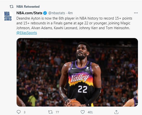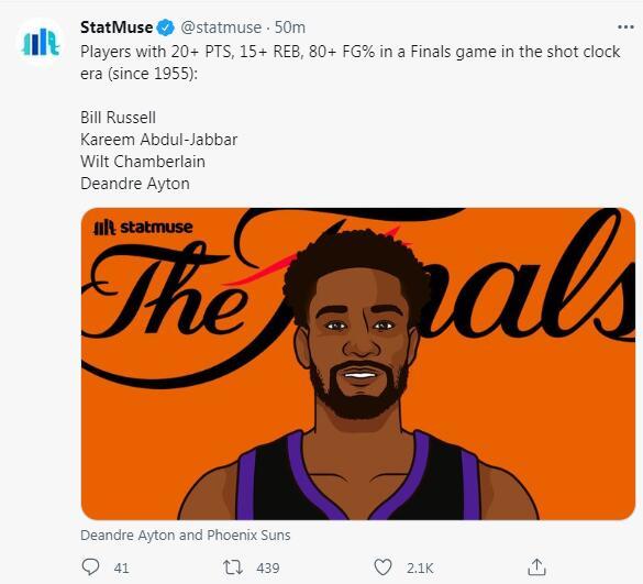 6.艾顿拿下20分+15篮板+命中率80%,自1955年后第四人,其余三人比尔拉塞尔、张伯伦、贾巴尔。7.艾顿今天抢下19个篮板,成为NBA历史上总决赛首秀抓下篮板第四多的球员。