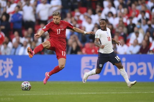 比赛很快就进入英格兰双中卫都压到中圈围攻的节奏,但丹麦每次获得球权之后总能打到他们身后,显示出极右弹性的防守反击。