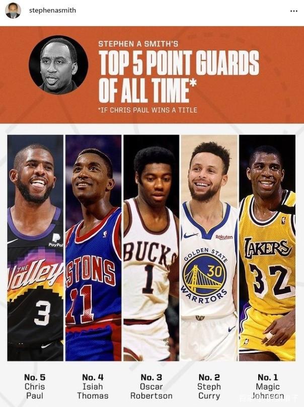 在太阳横扫掘金进军西部决赛期间,美国媒体提出一个观点:保罗只要今年拿下一个总冠军,就能进入NBA控卫的历史前五。这个观点得到众多球迷的认同。甚至在评论里点赞最多的内容是“圣保罗是控卫历史前三”。