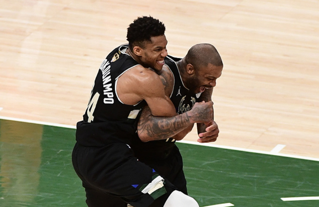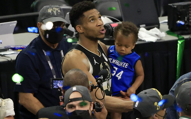 在字母哥从萧华手中接过FMVP奖杯后,字母哥盛赞米德尔顿:“我很高兴,非常非常高兴,这个人(指着米德尔顿)知道怎么推动我进步,我们每天都在竞争,他每天都在帮助我进步。我很高兴和他在一起共事这么久,其他人也是。我们在一起8年,我们为球队不懈努力,为密尔沃基赢下了总冠军。现在我们得再来一次。”字母哥在放出豪言后,和米德尔顿紧紧搂在一起,而米德尔顿看起来比较害羞。而字母哥表示,感谢球迷的支持和信任,现在,自己也有总冠军了。