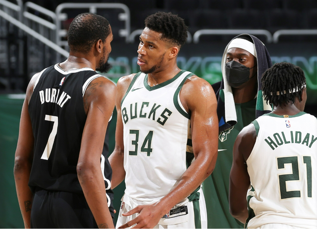 半决赛抢七大战:字母哥全场轰下40分+13篮板+5助攻,率领雄鹿加时击败篮网,惊险进入东决,并让杜兰特的48分成空砍。