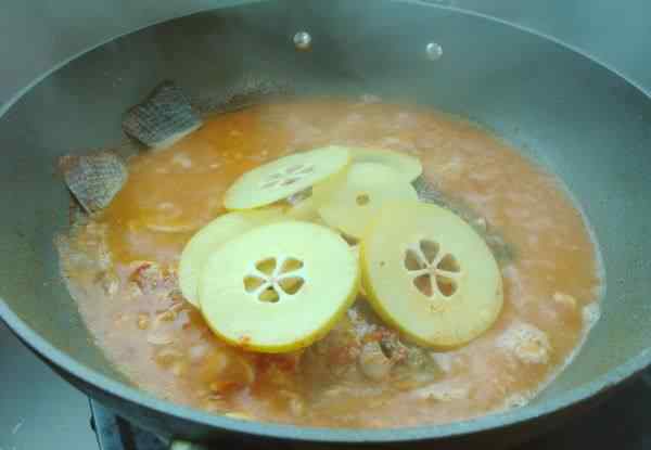 1 罗非鱼处理干净后,抹少许白酒去腥,然后抹上一些盐腌制备用。准备一块豆腐,一个大个洋芋去皮备用,再准备一个酸木瓜。