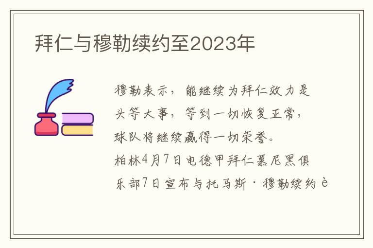 2.《 拜仁与穆勒续约至2023年》仅供读者参考,本网站未对该内容进行证实,对其原创性、真实性、完整性、及时性不作任何保证。