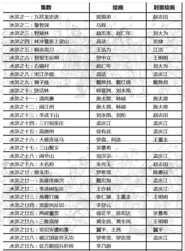二是画师阵容比老版本《水浒传》更广。作者大多是来自不同地区的著名艺术家,具体名单如下: