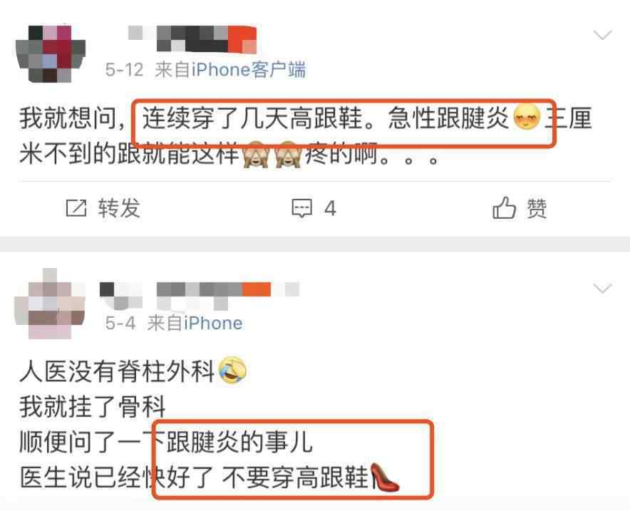 因为她这10年一直穿高跟鞋,给膝盖造成了很大的负担,现在膝盖不太好。
