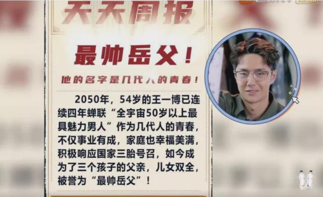 在节目背景中,时间定格在2050年,王一博是一个54岁的中年人士,并且有了3个孩子,虽然他化着一个浓厚的老年妆,但还是阻挡不住他的帅气!