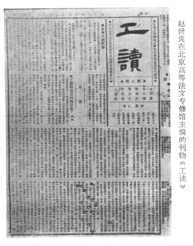 △赵世炎在北京高等法文专修馆主编的刊物《工读》