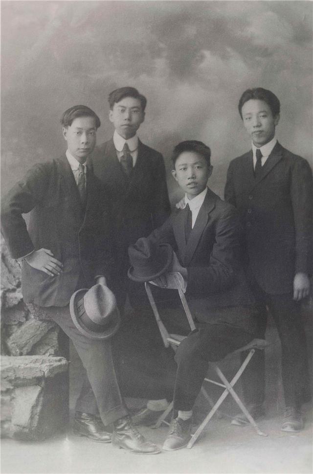 △赵世炎在法国勤工俭学时寄给北师大附中的照片(后排右一站立者为赵世炎)
