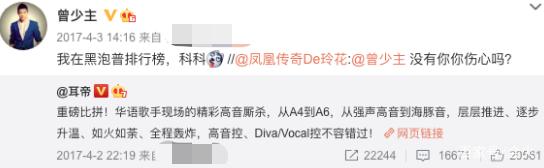比如玲花在耳帝的转发区里艾特他:排行榜里没有你,你伤心吗?