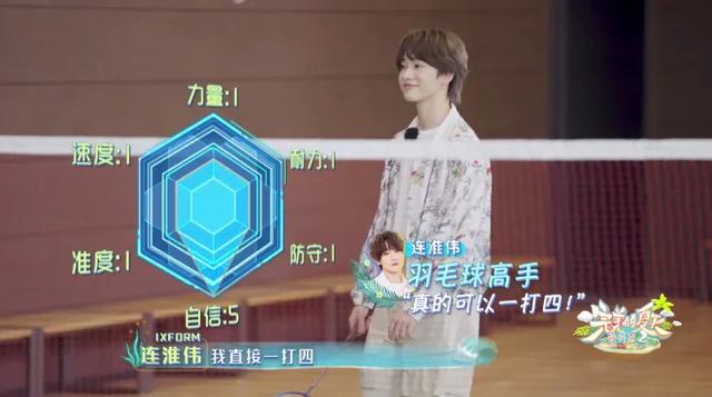 连淮伟的羽毛球要一打四,失败后只能组队出战。大家商量好输了做俯卧撑,男孩子奇怪的胜负欲就这么被撩拨起来。发现有篮筐,众人又轮流花式上篮,怎么帅怎么来。这还只是内部竞争呢,要是有女生观众相信赛况会更激烈。