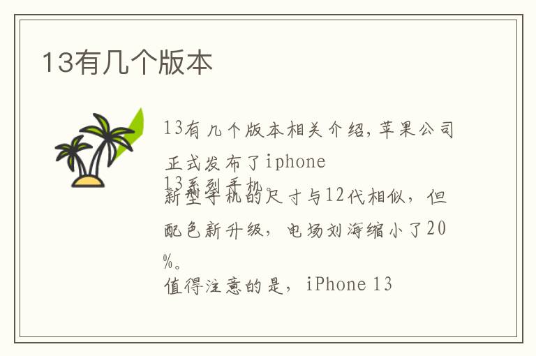 1.《13有几个版本》援引自互联网,旨在传递更多网络信息知识,仅代表作者本人观点,与本网站无关,侵删请联系页脚下方联系方式。