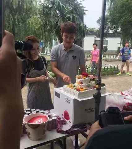 7月7日,有网友曝光一组贾乃亮探班李小璐,并在现场一起庆祝结婚四周年的照片。