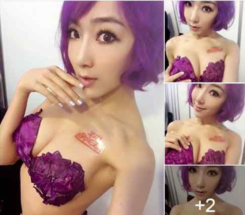 李宓15日在脸书贴出一系列突破尺度的照片,只见她脱去上衣,胸部的地方只用了2片紫紫色高丽菜包住,宏伟的双峰呼之欲出,F奶挤出的超深海沟相当惊人,甚至还暧昧地用手捧住乳房,性感的模样让网友全看傻了眼,不仅如此她更表示这套造型其实是想要跟自己的偶像女神卡卡致敬,然而她这次超越先前尺度,大方展露火辣身材也成功引起众多讨论。