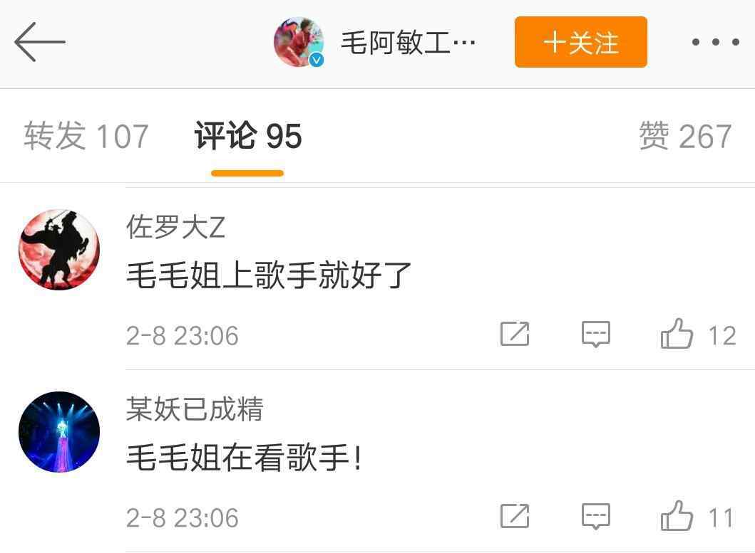 网友们都在说毛阿敏在看歌手,真的吗?
