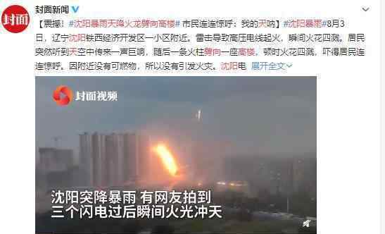 8月3日,据新闻报道,辽宁沈阳某小区附近居民突然听到天空中有很大的响声空,随后一根火柱劈向一栋高层建筑,突然产生火花,吓得居民惊叫起来。