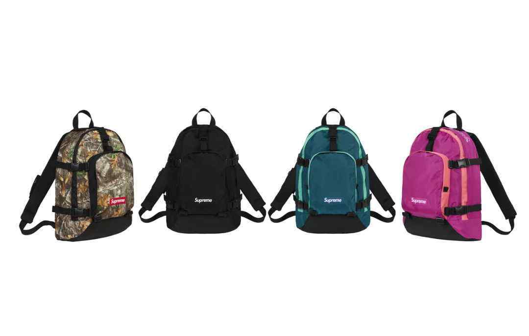 此外,每一季都备受追捧的Supreme包包,采用树型迷彩、黑色、湖绿、粉色等颜色和元素,推出背包、腰包、单肩包、便携包等不同种类的爆款。