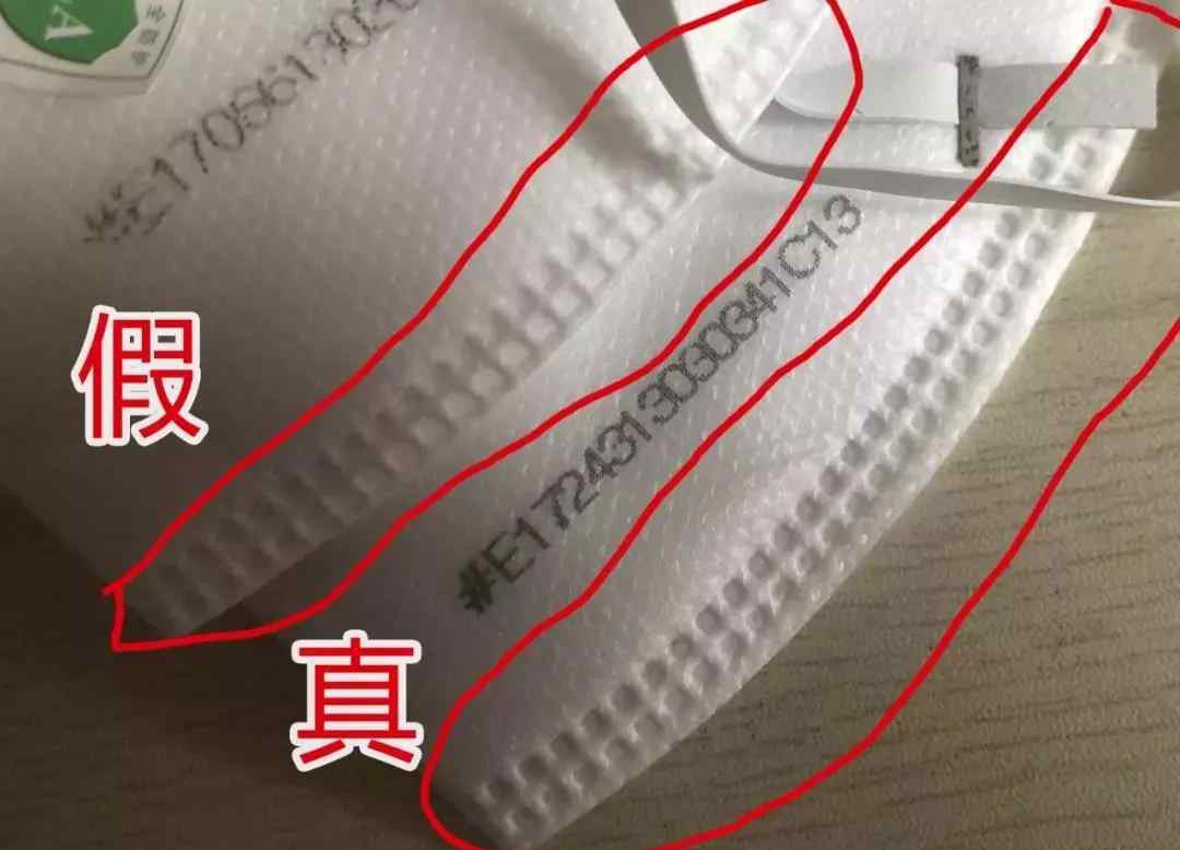 使用面具上的文字,真实面具的文字更清晰,更明显。黑色和细英文字体都是条纹排列,而假口罩的字会模糊,英文字体会错。