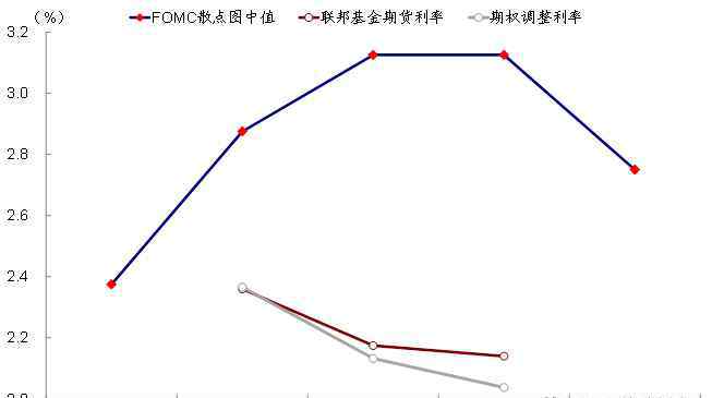 期货期权隐含的联邦基金利率明显低于美联储散点图预测的政策利率